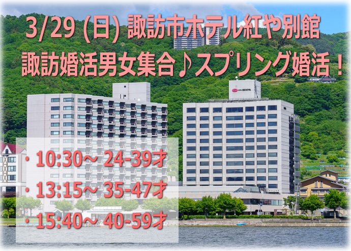 | 会 場:諏訪市 別館・稀石の癒[キセキのユ]1階イベントルーム 参加資格:第一部 10:30 〜 男女とも24〜39才 第二部 13:15 〜 男女とも35〜47才 第三部 15:40 〜 男女とも40〜59才 募集人数:男女各5〜12名程度 参加費:男性7,000円 女性2,000円 → パーティー詳細 男女ともHP申込み価格♪ |
